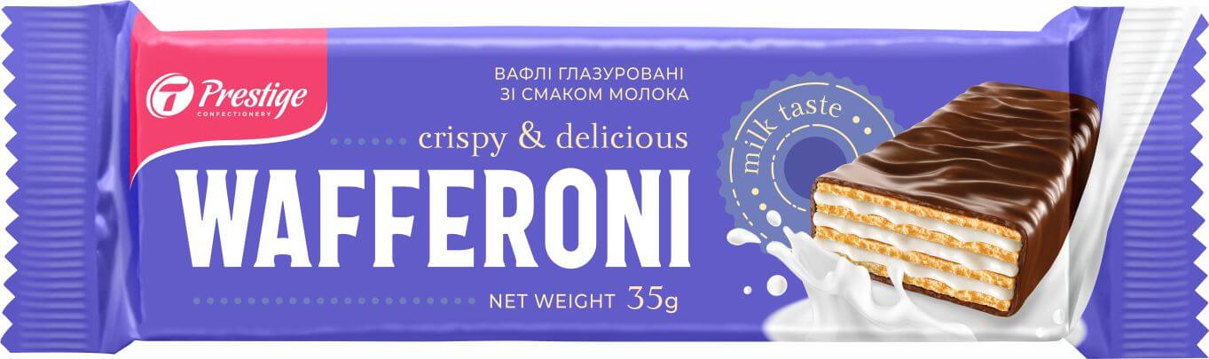 Вафлі глазуровані “WAFFERONI” зі смаком молока