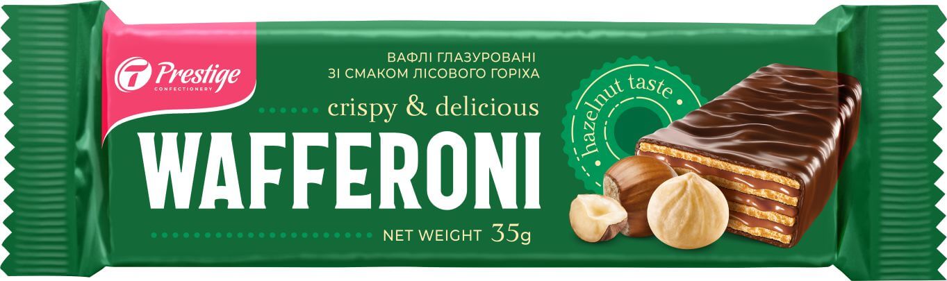 Вафлі глазуровані “WAFFERONI” зі смаком лісового горіха