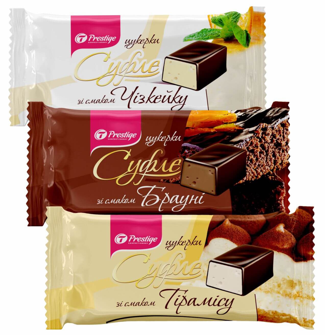 Конфеты «Суфле» ассорти со вкусами тирамису, чизкейка, брауни